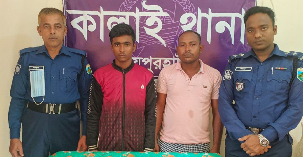 গ্রেপ্তার ব্যক্তিরা হলেন ওই উপজেলার ধাপ কালাই গ্রামের আ. আজিজের ছেলে ও চাতালশ্রমিক মো. আবির (১৬) ও একই গ্রামের মৃত আব্দুল ওহাবের ছেলে জাহিদুল ইসলাম (৩৩)।