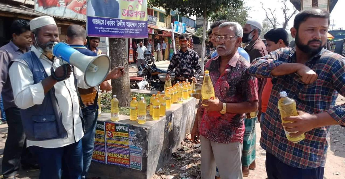 সয়াবিন তেলে ৩০ টাকা ছাড় দিয়ে অভিনব প্রতিবাদ