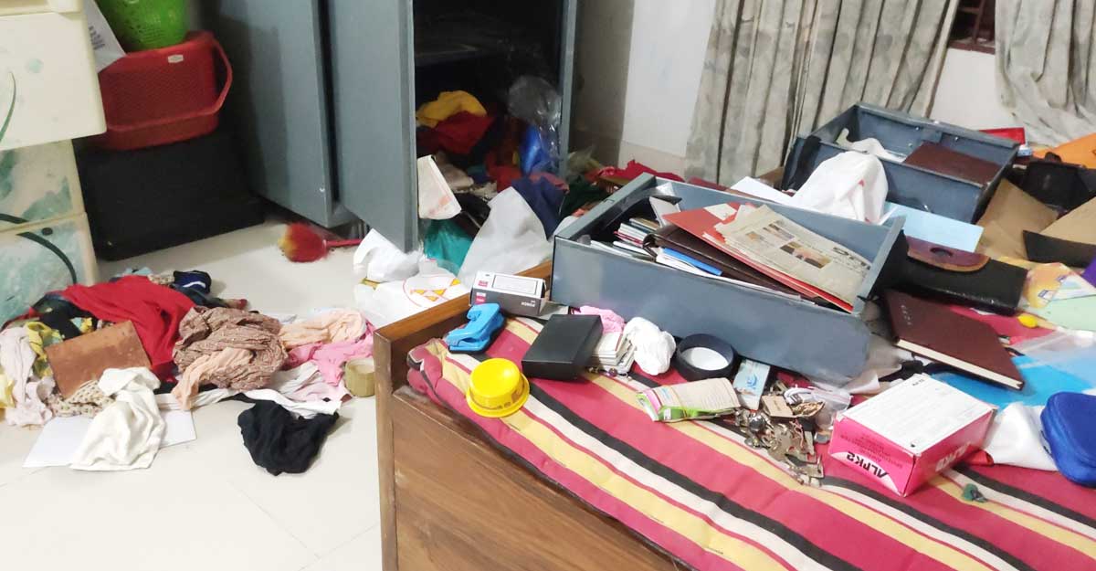 তিনি আরও বলেন, পরবর্তীতে আমি বাসায় ঢুকে দেখি আলমারি-কেবিনেটের তালা ভাঙা ও সব এলোমেলো। ডাকাতরা দিনে-দুপুরে আলমারিতে থাকা নগদ ২ লাখ টাকা ও ১৫ ভরি স্বর্ণ লুটে নেয়।