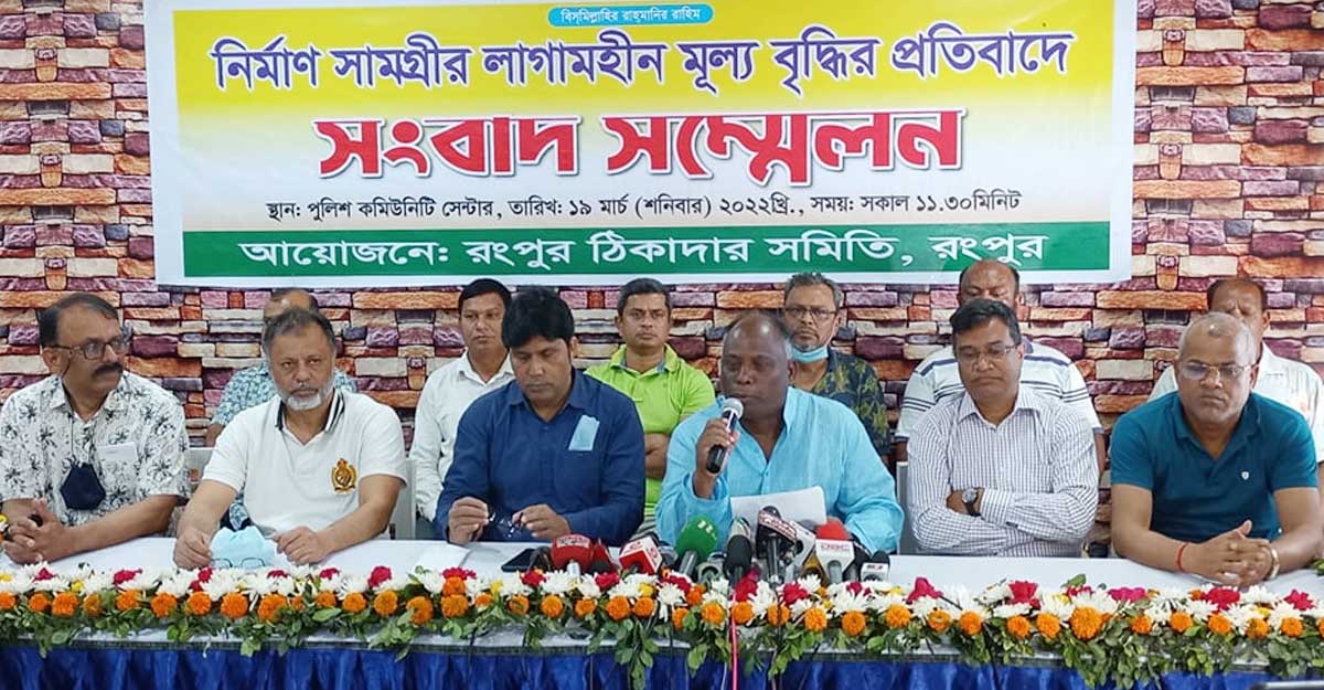 এর আগে লিখিত বক্তব্যে রংপুর ঠিকাদার সমিতির আহ্বায়ক রফিকুল ইসলাম দুলাল বলেন, সরকার কর্তৃক নির্ধারিত দরে ঠিকাদাররা দরপত্র জমা দিয়ে বিভিন্ন অবকাঠামো নির্মাণের কাজ করছেন। কিন্তু সাম্প্রতিক সময়ে প্রতিটি নির্মাণসামগ্রীর অস্বাভাবিক মূলবৃদ্ধি দরপত্রের চুক্তিমূল্য থেকে শতকরা ৪০ ভাগ বৃদ্ধি পেয়েছে। এ পরিস্থিতিতে যে ঠিকাদারের যত টাকার কাজ, তিনি অনুপাতিক হারে ততটাকার পুঁজি হারাতে বসেছেন।