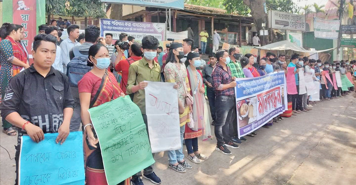 রাঙামাটিতে ছাত্রলীগ কর্মী জয় ত্রিপুরাকে হত্যার প্রতিবাদে মানববন্ধন করেছে ত্রিপুরা স্টুডেন্ট ফোরাম। মঙ্গলবার (২২ মার্চ) সকালে জেলা প্রশাসক কার্যালয়ের সামনে ঘণ্টাব্যাপী এই মানববন্ধন অনুষ্ঠিত হয়।