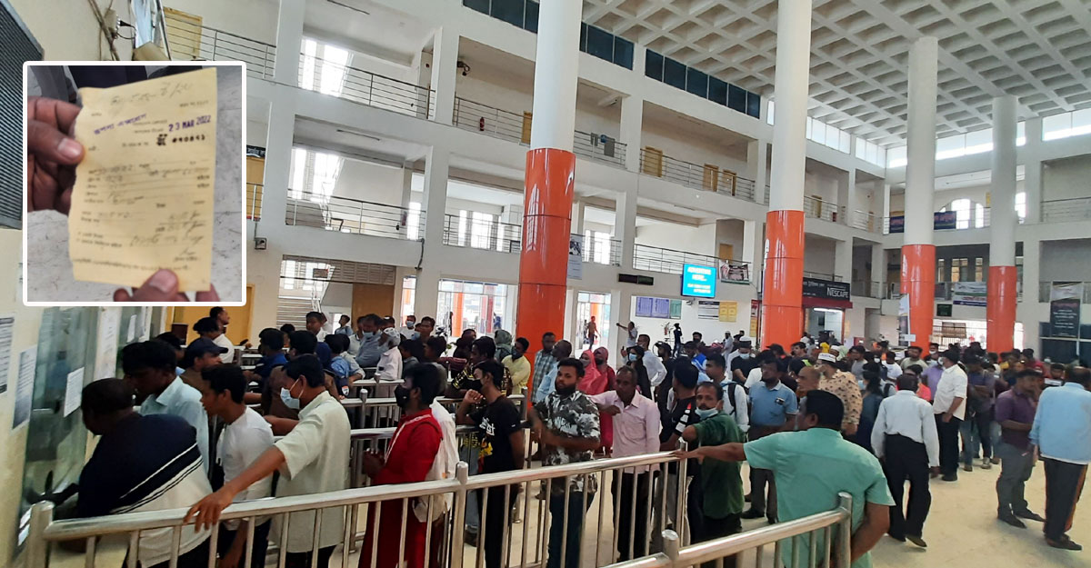 হাতে লিখে দেওয়া হচ্ছে ট্রেনের টিকিট, স্টেশনে দীর্ঘ লাইন