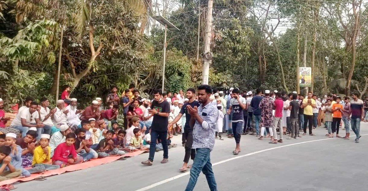 দুর্ঘটনা থেকে বাঁচতে সড়কে মিলাদ মাহফিল