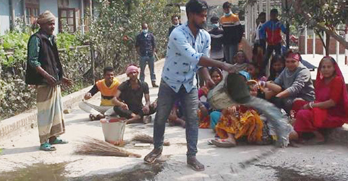 আদালত প্রাঙ্গণে টয়লেটের ময়লা ফেলে বিক্ষোভ করেন হরিজনরা