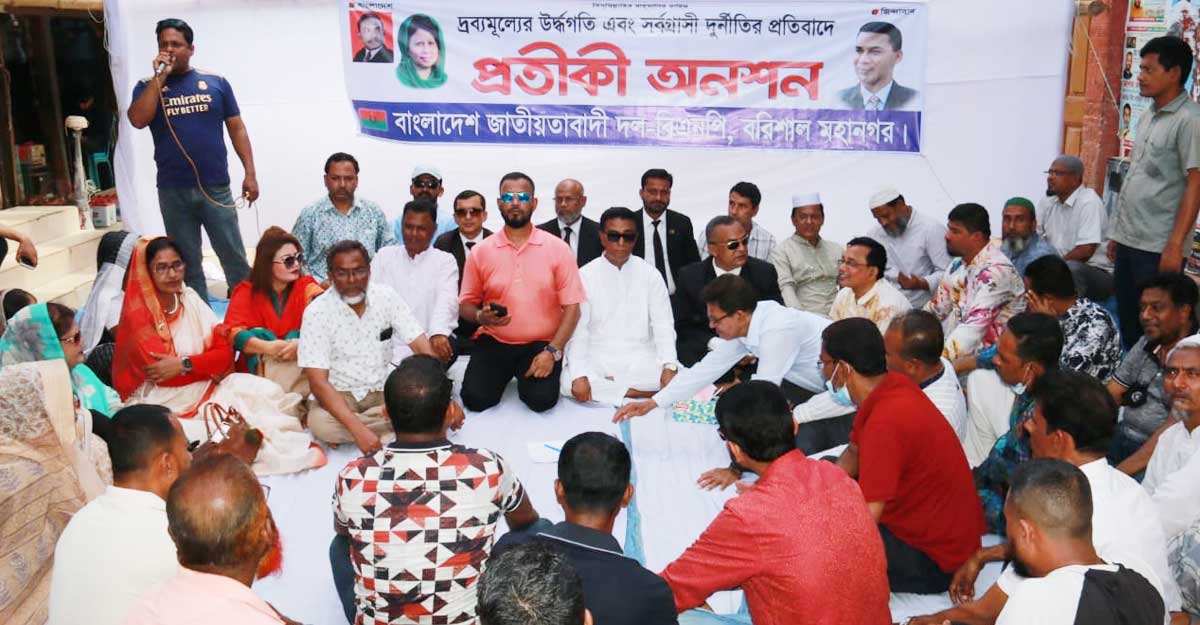 নিত্যপ্রয়োজনীয় দ্রব্যমূল্যের ঊর্ধ্বগতি ও সর্বগ্রাসী দুর্নীতির প্রতিবাদে বরিশালে প্রতীকি অনশন করেছে মহানগর বিএনপি। বৃৃহস্পতিবার (২৪ মার্চ) দুপুরে নগরীর অশ্বিনী কুমার হল সংলগ্ন জেলা ও মহানগর বিএনপির দলীয় কার্যালয়ের সামনে এই কর্মসূচি পালন করেন তারা।