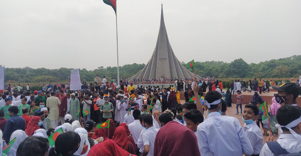 শনিবার (২৬ মার্চ) সকালে জাতীয় স্মৃতিসৌধ প্রাঙ্গণে দেখা যায়, একের পর এক রাজনৈতিক দল, সরকারি-বেসরকারি প্রতিষ্ঠানের কর্মকর্তা-কর্মচারী, শ্রমিকরা শহীদদের শ্রদ্ধা জানাচ্ছেন। সকালে সাধারণ মানুষের ভিড় একটু কম থাকলেও বেলা বাড়ার সঙ্গে সঙ্গে জনসমুদ্রে পরিণত হয় পুরো সৌধ।
