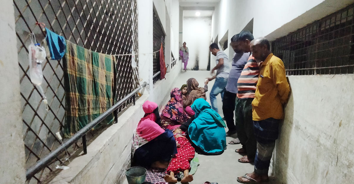 উজ্জ্বল মাসুদ নামে এক যুবক বলেন, তিন দিন ধরে ডায়রিয়ায় আক্রান্ত আমি। সোমবার দুপুরে সদর হাসপাতালে ভর্তি হয়েছি। ওয়ার্ডে কোনো জায়গা নেই। বারান্দায় চিকিৎসা নিতে হচ্ছে।