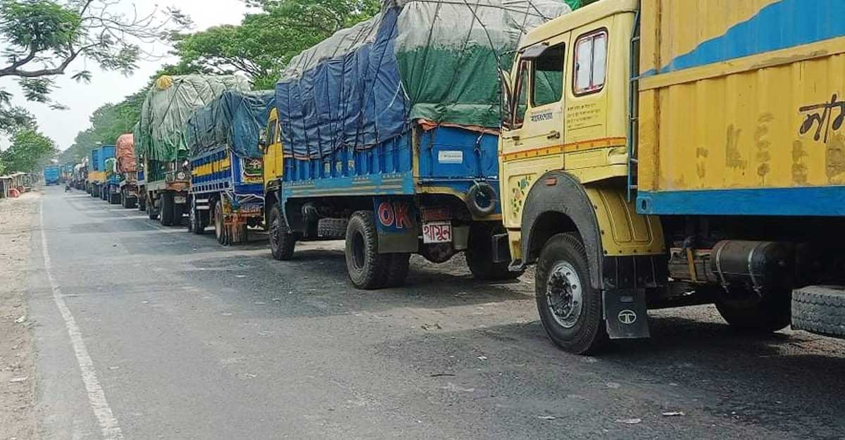 বৃহস্পতিবার (৩১ মার্চ) বেলা ১১টা থেকে দুপুর ৩টা পর্যন্ত দৌলতদিয়া ঘাটে সরেজমিনে দেখা যায়, ফেরিঘাটের জিরো পয়েন্ট থেকে ঢাকা-খুলনা মহাসড়কের পদ্মার মোড় পর্যন্ত ৫ কিলোমিটার এলাকায় ৫ শতাধিক পচনশীল ও অপচনশীল পণ্যবাহী ট্রাকের সারি তৈরি হয়েছে।