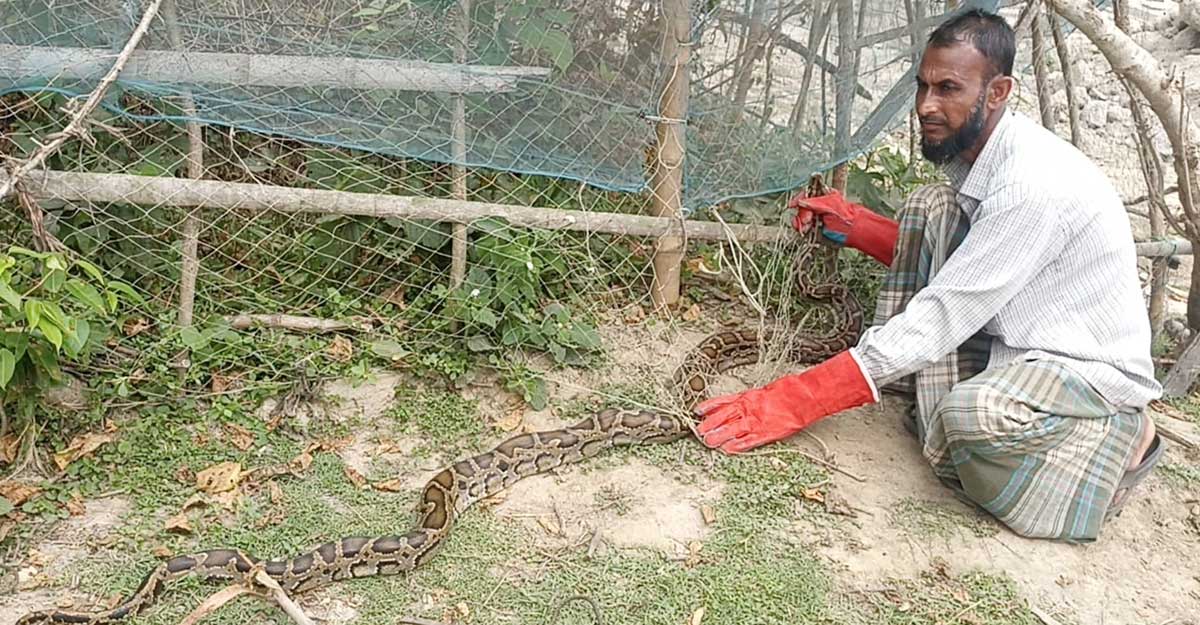 সবজি ক্ষেত থেকে ১০ ফুট লম্বা অজগর উদ্ধার