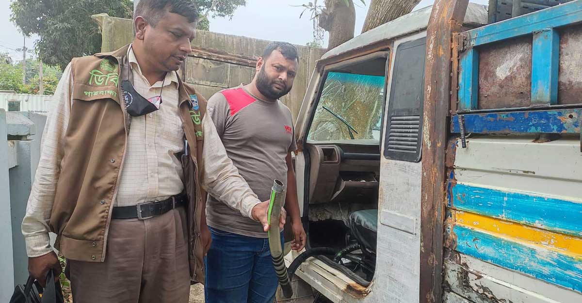 গাইবান্ধায় তেল চুরির অভিনব কায়দার গাড়ি আটক