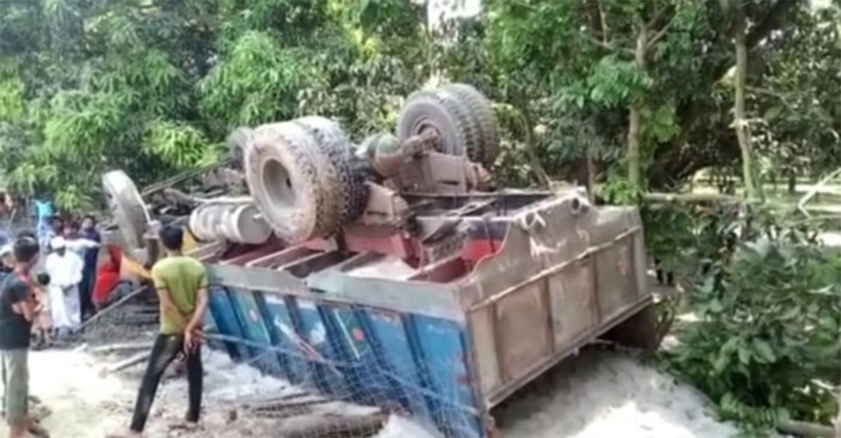 বালুবোঝাই ট্রাক উল্টে প্রাণ গেল নারীর