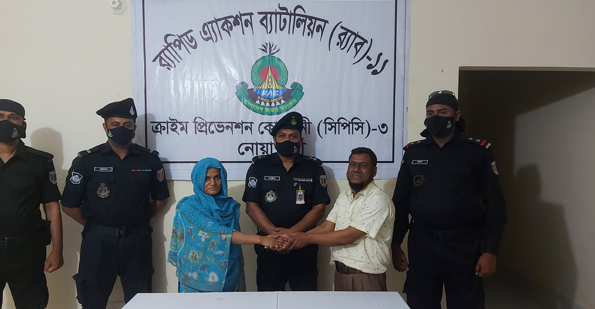 সোমবার (৪ এপ্রিল) রাত ১২টার দিকে র্যাব-১১ এর সিপিসি-৩ নোয়াখালী ক্যাম্পের কোম্পানি কমান্ডার ও অতিরিক্ত পুলিশ সুপার খন্দকার মো. শামীম হোসেন আছিয়া খাতুনকে তার ভাই মো. শহীদ উল্লাহর হাতে তুলে দেন।
