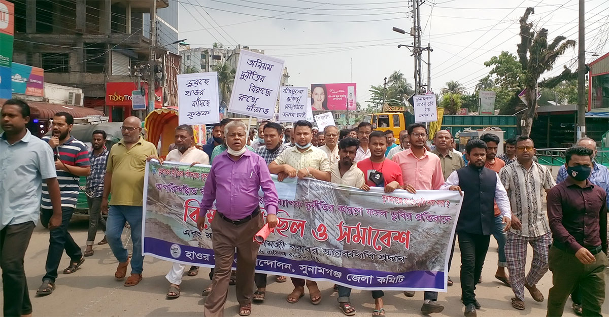 সুনামগঞ্জে ফসলডুবির প্রতিবাদে বুধবার (৬ এপ্রিল) দুপুরে হাওর বাঁচাও আন্দোলন জেলা কমিটির ডাকা বিক্ষোভ মিছিল-পরবর্তী সমাবেশ এসব কথা বলেন তিনি।