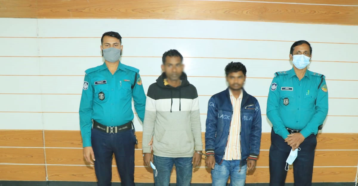 গ্রেপ্তাররা হলেন-রংপুর জেলার কোতোয়ালি থানার দেওয়ান টুলি এলাকার মো. মনোয়ার হোসেনের ছেলে মো. নাজমুল হোসেন (২২) এবং গাজীপুরের কালিয়াকৈর উপজেলার আটাবহ এলাকার মানিক চন্দ্র সরকারের ছেলে গকুল চন্দ্র সরকার ওরফে বকুল সরকার (৩০)।