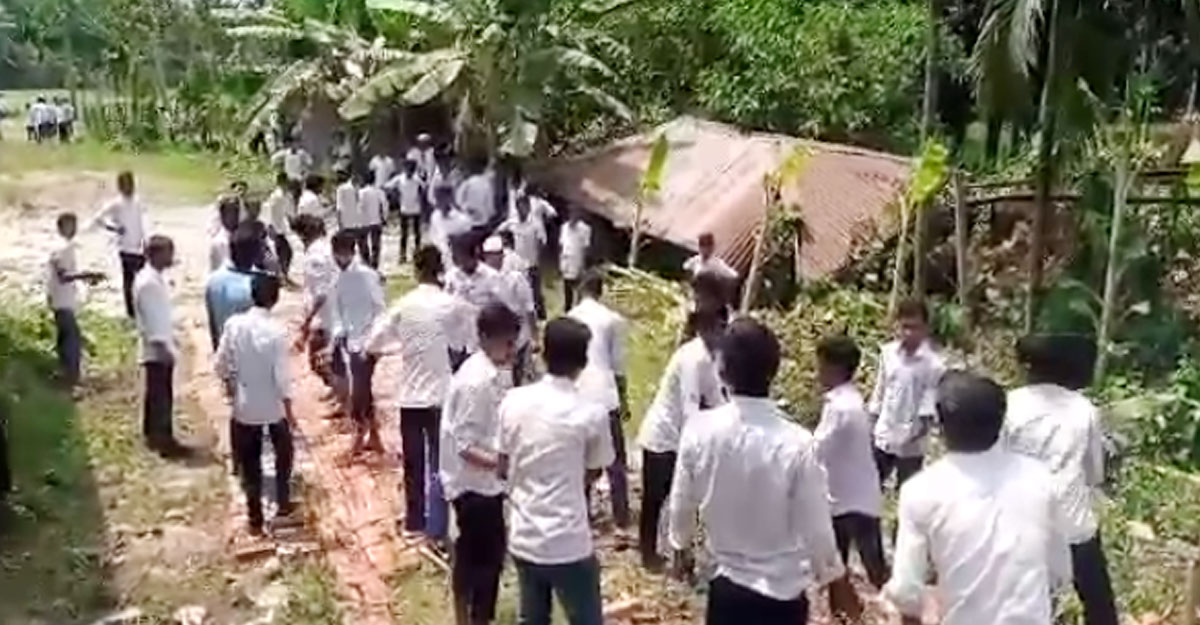 এদিকে স্কুলছাত্রদের দিয়ে জমি দখলের ঘটনার একটি ভিডিও সামাজিক যোগাযোগ মাধ্যম ফেসবুকেও ছড়িয়ে পড়ে। ভিডিওটিতে স্কুলড্রেস পরা ছাত্রদের ইট বহন করতে দেখা যায়।