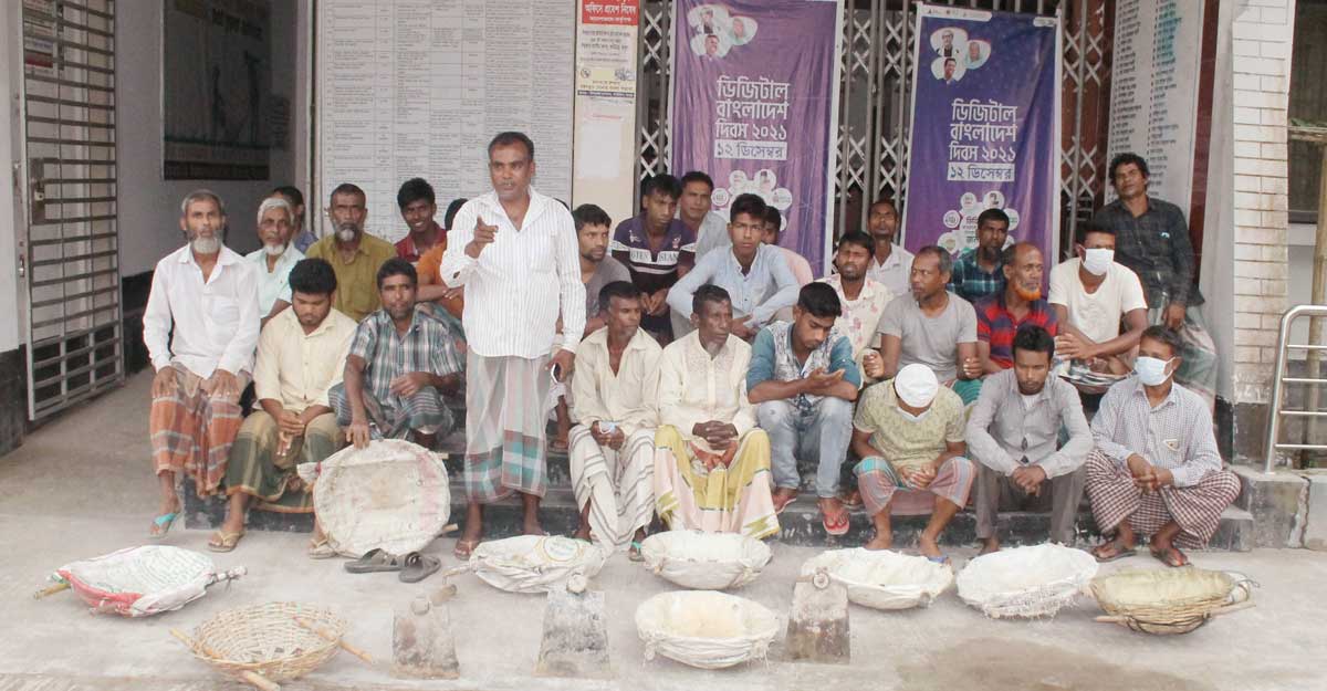 মাটিকাটার মজুরি দিতে টালবাহানা, ডালি-কোদাল নিয়ে প্রতিবাদ