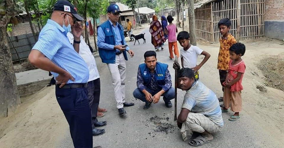 রাস্তার কাজে কার্পেটিং ও খোয়া ও বিটুমিন সরেজিমনে যাচাই করেন প্রকৌশলী হাবিবুর রহমান। অভিমত ব্যক্ত করে প্রকৌশলী হাবিবুর জানান, খালি চোখে রাস্তায় ব্যবহৃত বিটুমিনের পরিমাণ সঠিক নেই বলে মনে হয়েছে। তবে এটির সঠিক মাত্রা জানার জন্য উপকরণের ম্যাটেরিয়াল টেস্ট করা প্রয়োজন।