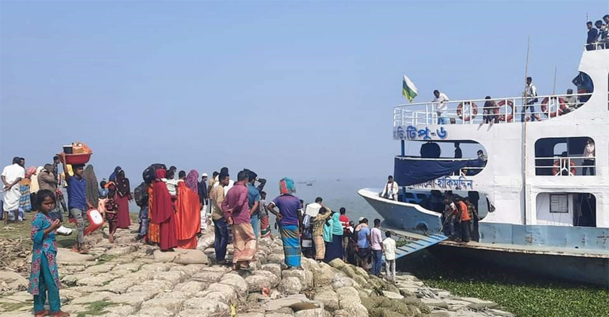 ভোলায় পন্টুনবিহীন লঞ্চ নোঙর, শহর রক্ষা বাঁধে ধস