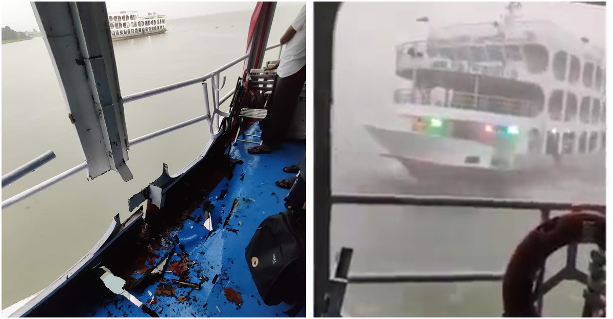 কালবৈশাখী ঝড়ের কবলে পড়ে দুই লঞ্চের সংঘর্ষ