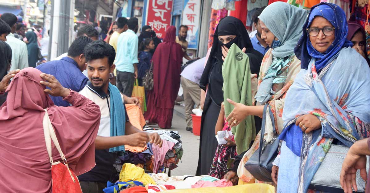 গত দুই বছরের লোকসান পুষিয়ে নিতে ব্যস্ত সময় পার করছেন বিক্রেতারা। আর ঈদ উদযাপনে ক্রেতারা খুঁজছেন শখ, সাধ্য আর পছন্দের পোশাক।