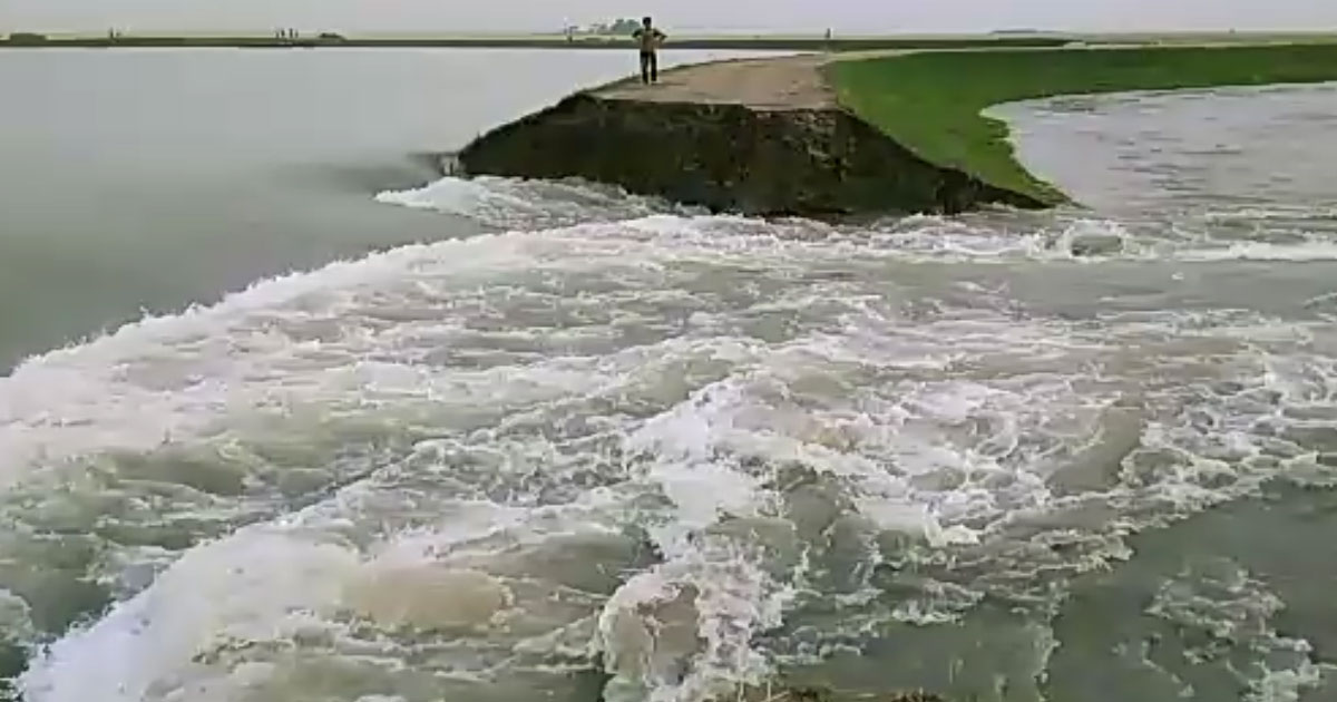 সুনামগঞ্জে ছায়ার হাওরের বাঁধ ভেঙে ঢুকছে পানি