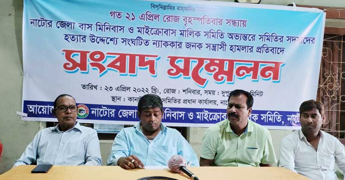 শনিবার (২৩ এপ্রিল) দুপুরে শহরের কানাইখালী নাটোর জেলা বাস-মিনিবাস মালিক সমিতির নিজস্ব কার্যালয়ে সংবাদ সম্মেলনে এ ধর্মঘটের ডাক দেন সমিতির আহ্বায়ক প্রশান্ত কুমার পোদ্দার।
