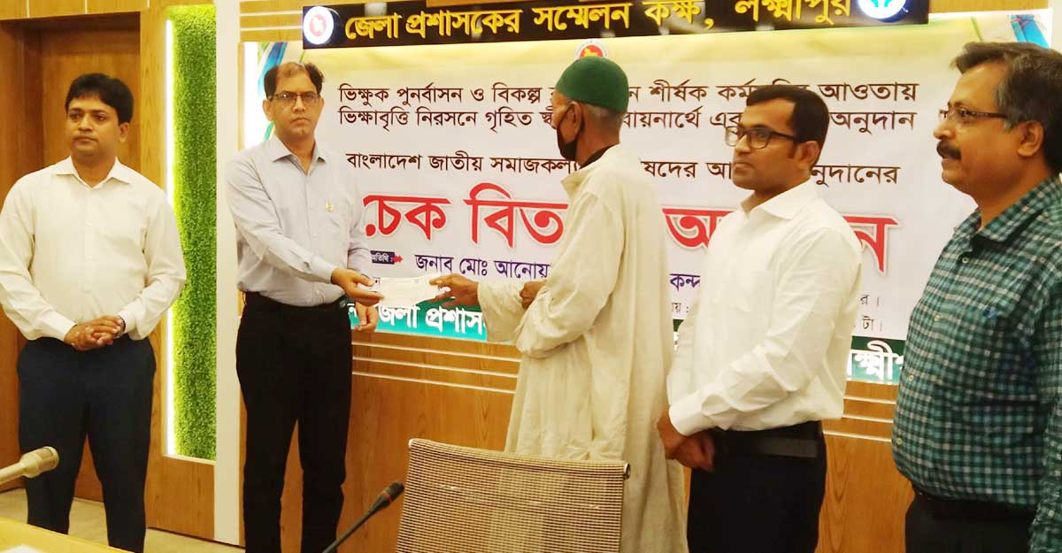 লক্ষ্মীপুরে পুনর্বাসন ও বিকল্প কর্মসংস্থান সৃষ্টির লক্ষ্যে ৪২ জন ভিক্ষুকের মাঝে ১০ লাখ ৫০ হাজার টাকা অনুদানের চেক বিতরণ করা হয়েছে। সোমবার (২৫ এপ্রিল) সকালে জেলা প্রশাসকের সম্মেলন কক্ষে আয়োজিত সভায় জাতীয় সমাজ কল্যাণ পরিষদের উদ্যোগে এ আর্থিক অনুদান দেওয়া হয়। এ সময় অসহায়, গরিব ও অসুস্থ ২২১ জনকে ১১ লাখ ৫ হাজার টাকার দেওয়া হয়।