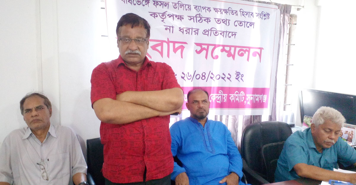 সংবাদ সম্মেলনে লিখিত বক্তব্যে বলা হয়, গত ২ এপ্রিল থেকে ২৪ এপ্রিল পর্যন্ত পানি উন্নয়ন বোর্ডের বাঁধ ভেঙে ও নদীর পাড় উপছে ৩১টি হাওরের প্রায় ২০ হাজার হেক্টর জমির ফসল তলিয়ে গেছে। এই বিপুল পরিমাণ ধান তলিয়ে গেলেও পানি উন্নয়ন বোর্ড, কৃষি সম্প্রসারণ অধিদপ্তর ও উপজেলা নির্বাহী কর্মকর্তা রহস্যজনক কারণে ক্ষয়ক্ষতির প্রকৃত তথ্য তুলে ধরছে না।