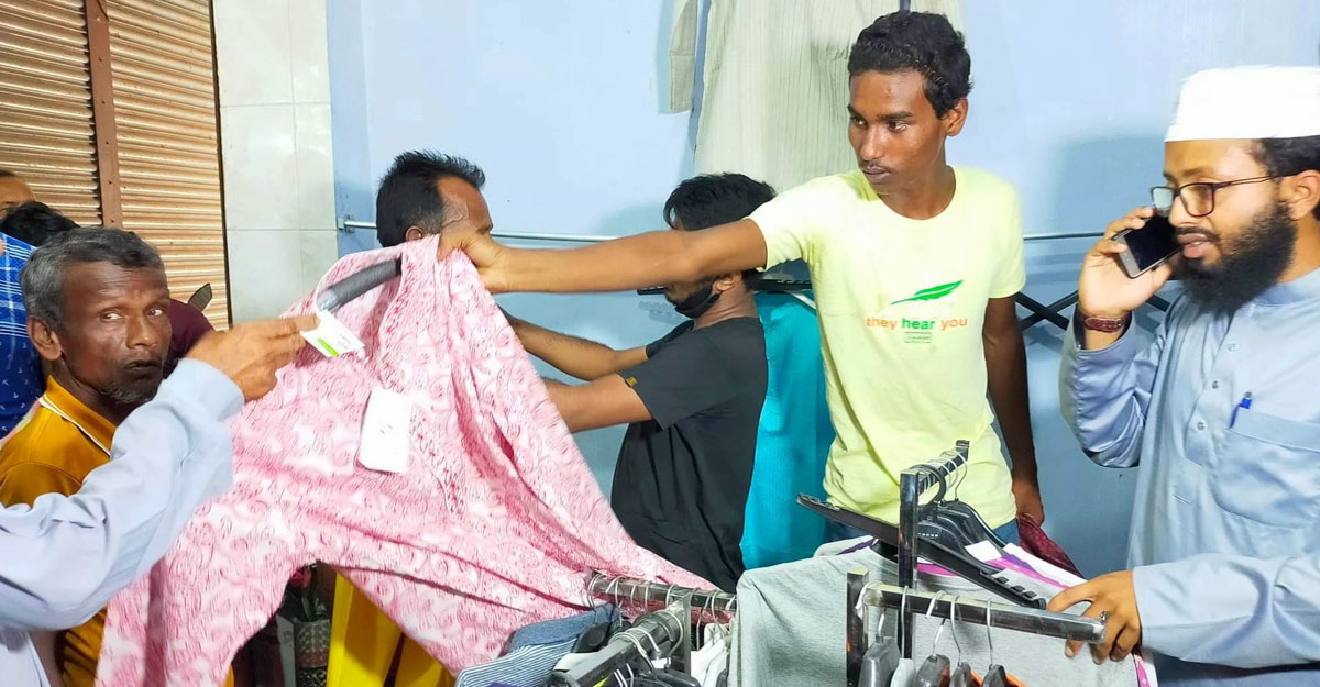 দোকানে সাজানো নানা ধরনের পোশাক। রয়েছে কয়েকজন বিক্রয়কর্মীও। ছোট থেকে বয়োজ্যেষ্ঠ সবাই আসছেন দোকানে। ঘুরে ঘুরে পছন্দের পোশাক নিয়ে যাচ্ছেন তারা। কিন্তু পছন্দের পোশাক নিতে লাগছে না কোনো টাকা। এখানে শুধু ছেলেদের পোশাক পাওয়া যাচ্ছে। একজন শুধুমাত্র একটি পোশাক নিতে পারছেন এখান থেকে।