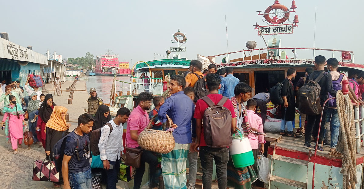 শিরিন আক্তার নামে আরেক যাত্রী বলেন, পরিবার নিয়া যাত্রাবাড়ি থাকি। সেখানে ফুটপাতে দোকান করি। আমরা তো আয়-রোজগার কম, তাই আগেই বাড়ি যাইতাছি। কাল থেকে বাসের যাত্রীর চাপ বাড়বে, আবার ভাড়াও বেশি দিতে হবে। এজন্য আগেভাগেই গ্রামের বাড়িতে যাচ্ছি। ভোগান্তি ছাড়াই লঞ্চে করে নদী পার হতে পারছি।