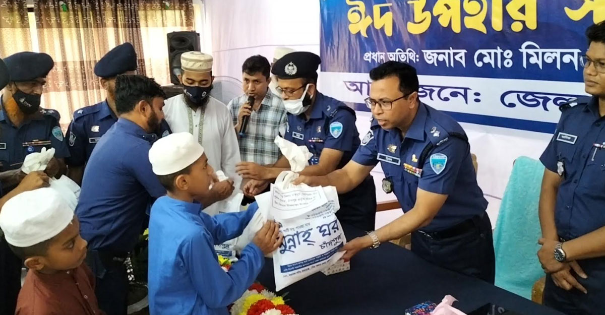 চাঁদপুরে এতিম শিশুদের মাঝে পুলিশের ঈদ উপহার বিতরণ