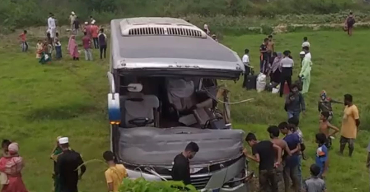 ৩০ যাত্রী নিয়ে সড়ক থেকে মাঠে সেন্টমার্টিন পরিবহন
