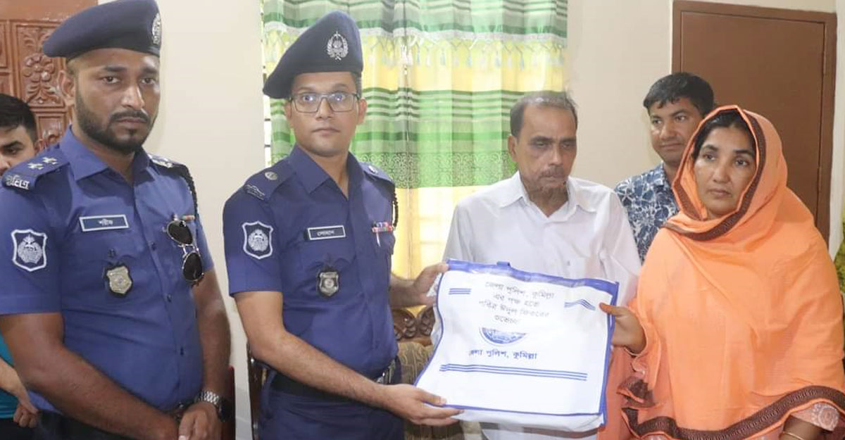 কুমিল্লায় মাদককারবারিদের গুলিতে নিহত সাংবাদিক মহিউদ্দিন সরকার নাঈমের বাড়িতে ঈদ উপহার পাঠিয়েছে পুলিশ। সোমবার (২ মে) বেলা ১১টার দিকে ব্রাহ্মণপাড়া উপজেলার অলুয়া গ্রামে কুমিল্লার পুলিশ সুপারের পক্ষ থেকে ঈদ উপহার নিয়ে যান অতিরিক্ত পুলিশ সুপার (সদর সার্কেল) সোহান সরকার।