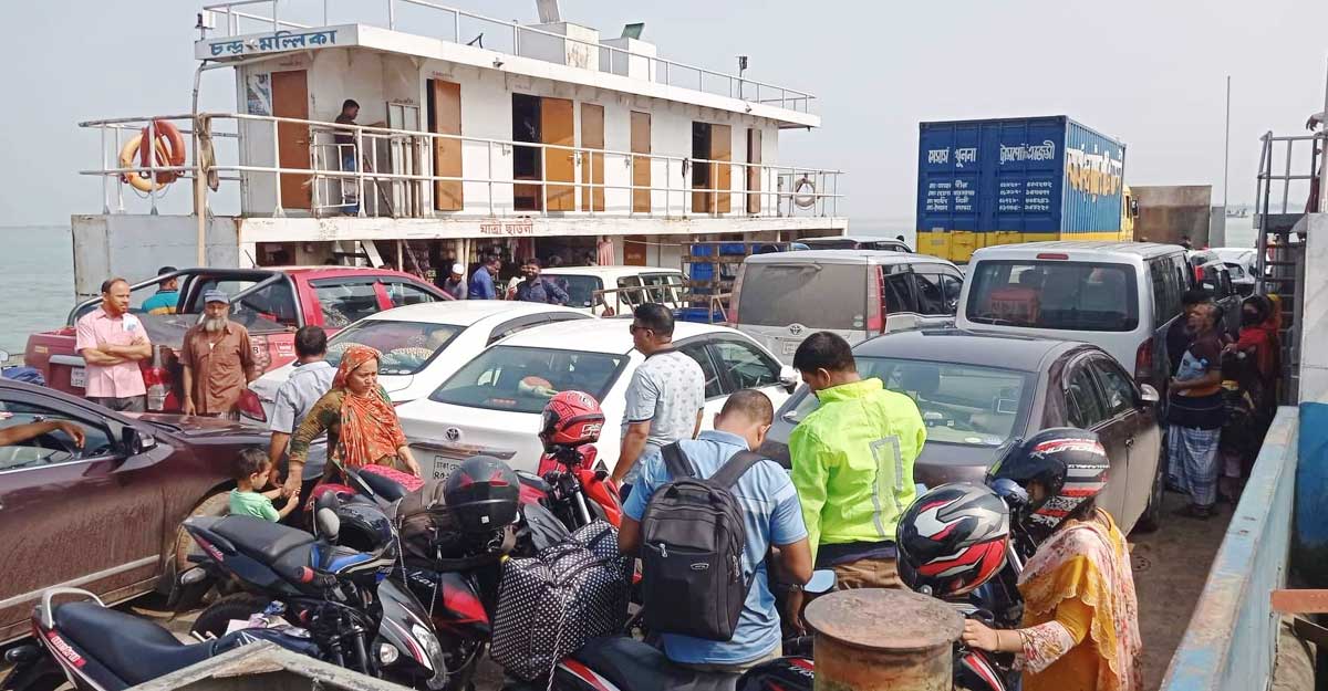 বৃহস্পতিবার (৫ এপ্রিল) সকাল থেকে দেখা যায়, দক্ষিণ পশ্চিমাঞ্চলের বিভিন্ন জেলা থেকে মানুষ বিভিন্ন পরিবহনে ঘাটে আসছেন। অনেক যাত্রী দুর্ভোগ এড়াতে দূরপাল্লার বাসে না এসে লোকাল গাড়িতে এসে ঘাটে নামছে। এরপর লঞ্চ ও ফেরিতে পার হয়ে পাটুরিয়া যাচ্ছে। তবে ঘাট এলাকায় ব্যক্তিগত গাড়ি ও মোটরসাইকেল ছিল চোখে পড়ার মতো।