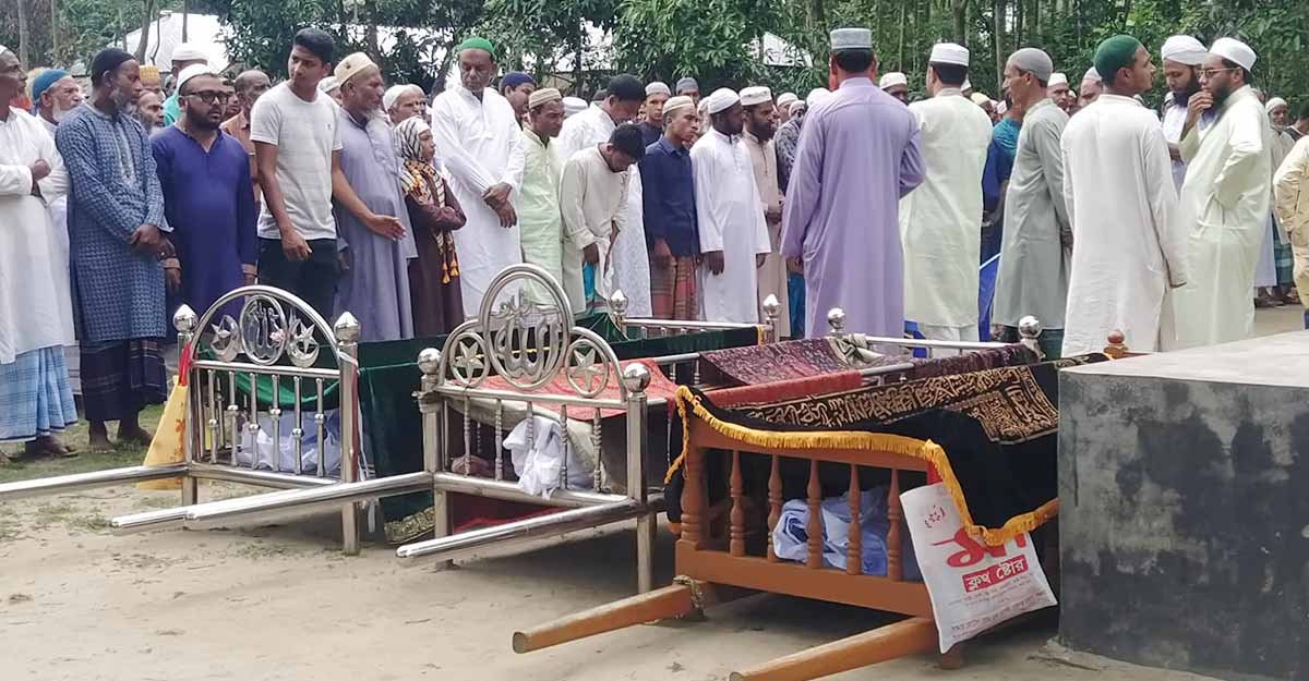 বৃহস্পতিবার (৫ মে) সকাল সাড়ে ১০টায় জানাজা শেষে তিনজনকেই পাশাপাশি দাফন করা হয়েছে স্থানীয় কবরস্থানে।