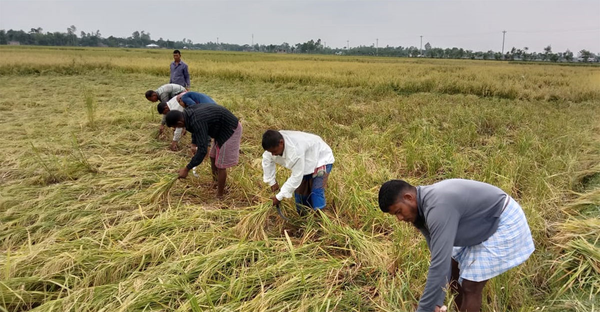 কৃষকদের সঙ্গে কথা বলে জানা গেছে, কয়েক দিন আগে কালবৈশাখী ঝড়-বৃষ্টির প্রভাবে পাকা ও আধা পাকা ধানের গাছ জমিতে নুয়ে পড়েছে। কিছু নিচু জমিতে এখনো পানি জমে আছে। তাই ধান কেটে নিতে হচ্ছে চড়া দামে। প্রাকৃতিক দুর্যোগ না হলে প্রতি বিঘা ধান কাটা যেত ২ হাজার থেকে আড়াই হাজার টাকায়। এখন সেই ধান কাটাতে হচ্ছে দ্বিগুণ দামে। এখন প্রতি বিঘা ধান কেটে নিতে হচ্ছে ৪ থেকে ৫ হাজার টাকায়। এবার ধানে লোকসান গুনতে হবে জানান কৃষকরা।