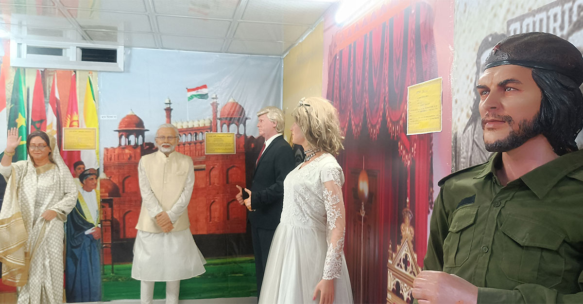 পরের কামরাটি আলো-ঝলমলে। ঢুকতেই রাইফেল কাঁধে দাঁড়ানো বিপ্লবের বিশ্বপ্রতীক চে গুয়েভারা। এই কক্ষের এক কোণে বসে কাব্যচর্চায় মগ্ন কবিগুরু রবীন্দ্রনাথ ঠাকুর। পাশে দাঁড়িয়ে বিদ্রোহী কবি কাজী নজরুল ইসলাম ও ভারতীয়-বাঙালি বিপ্লবী ক্ষুদিরাম বসু।