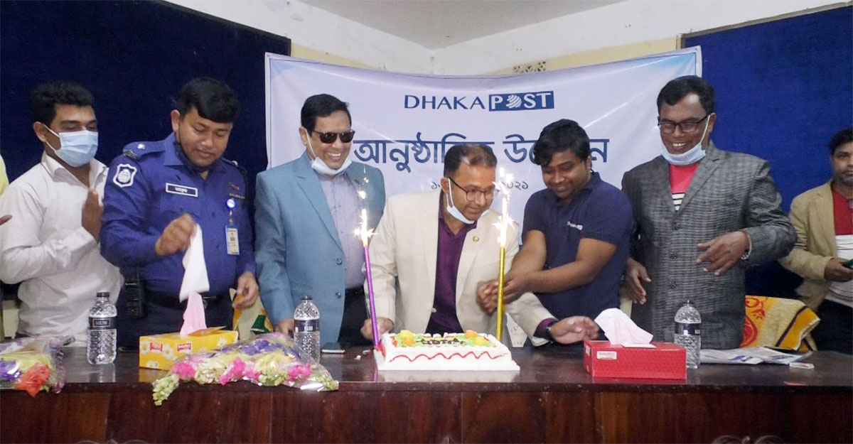 জেলা পরিষদ হলরুমে ঢাকা পোস্টের উদ্বোধনে কেক কাটছেন অতিথিরা