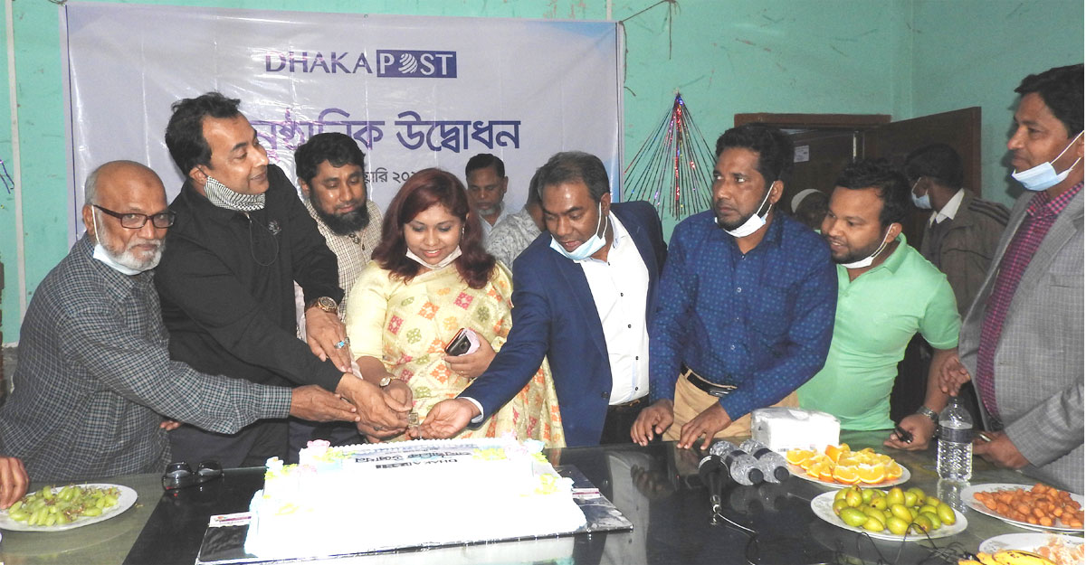 রূপগঞ্জ প্রেসক্লাবে ঢাকা পোস্টের উদ্বোধনে কেক কাটছেন অতিথিরা