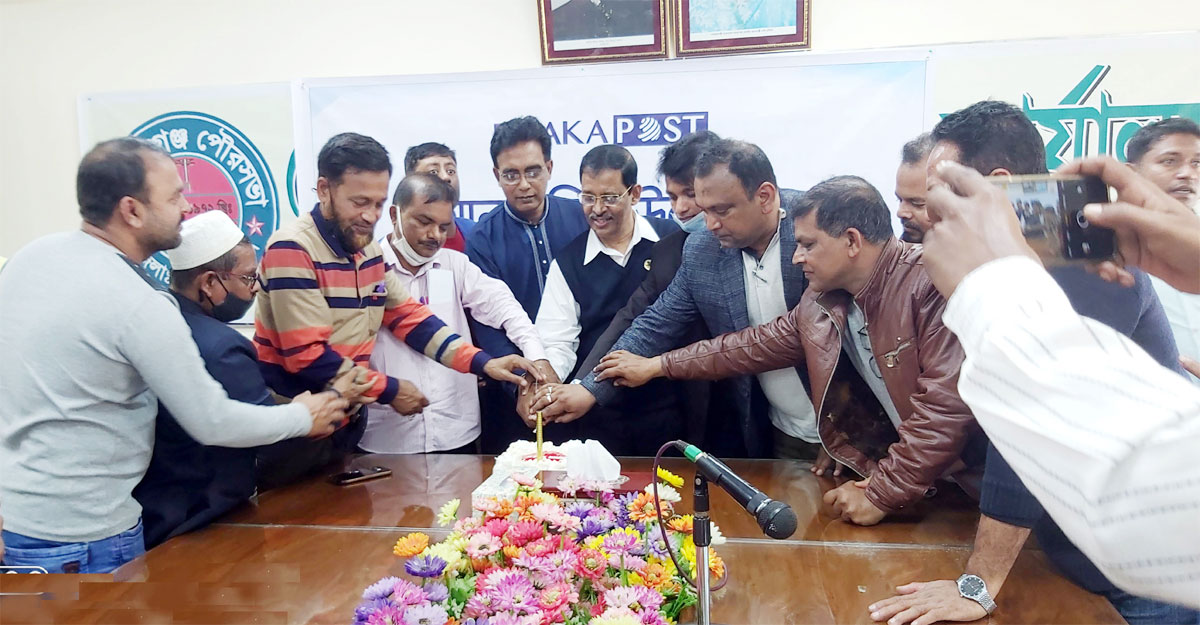গোপালগঞ্জ পৌর সভার সম্মেলনকক্ষে ঢাকা পোস্টের উদ্বোধনে কেক কাটছেন অতিথিরা