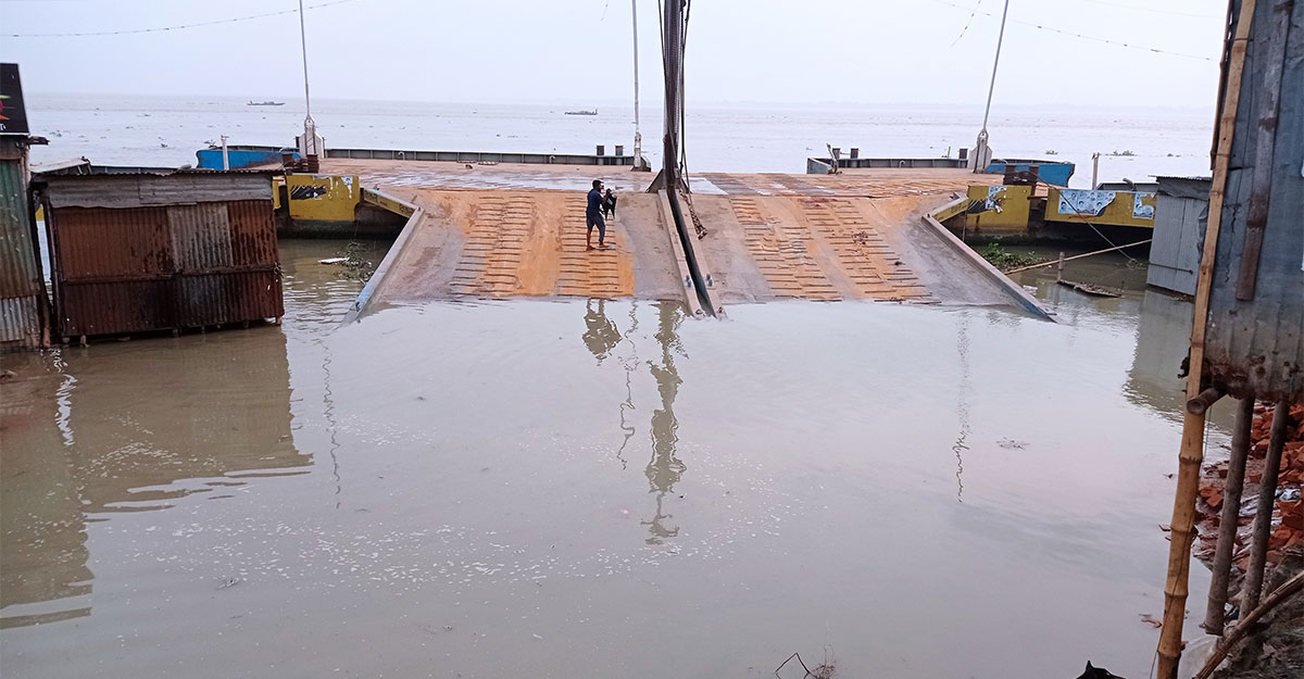 শুক্রবার (২০ মে) সকালে দৌলতদিয়া ফেরিঘাটে দেখা যায়, পানিবৃদ্ধির কারণে দৌলতদিয়া প্রান্তের ৫ নং ফেরিঘাটের সংযোগ সড়কসহ পন্টুনের এক-তৃতীয়াংশ পানির নিচে রয়েছে। এতে ওই ঘাটটি বন্ধ রেখেছে ঘাট কর্তৃপক্ষ।