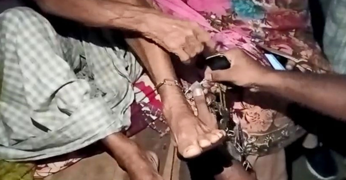 জমি লিখে না দেওয়ায় বৃদ্ধ বাবাকে শিকলবন্দী করলেন সন্তানেরা