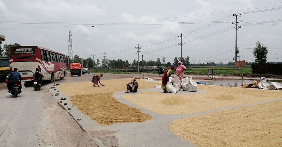 মহাসড়কে শুকানো হচ্ছে ধান-খড়, দুর্ঘটনার আশঙ্কা