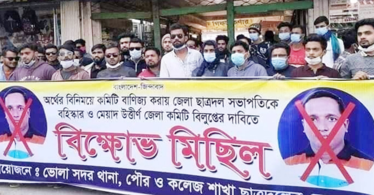 ভোলা জেলা ছাত্রদল সভাপতির বহিষ্কার দাবিতে বিক্ষোভ মিছিল