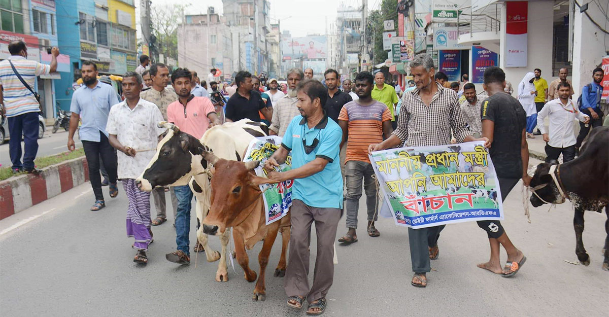 ছয় দফা দাবিতে গরু নিয়ে সড়কে খামারিরা