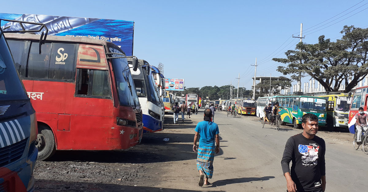 পরিবহন ধর্মঘটে বাস চলাচল বন্ধ রয়েছে