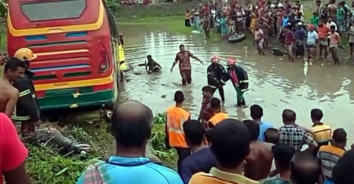 মোটরসাইকেল-ভ্যানকে চাপা দিয়ে বাস খাদে, নিহত ২
