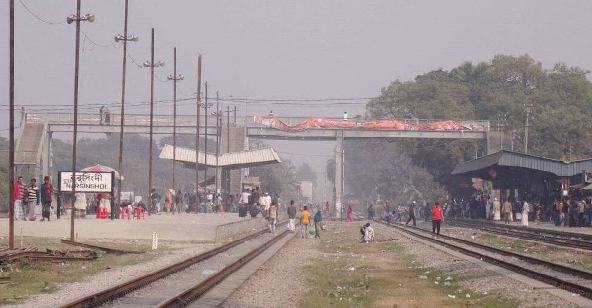 নরসিংদী রেলওয়ে স্টেশনের ওভারব্রিজে এক কলেজছাত্রীকে মারধর করেছে এক বখাটে