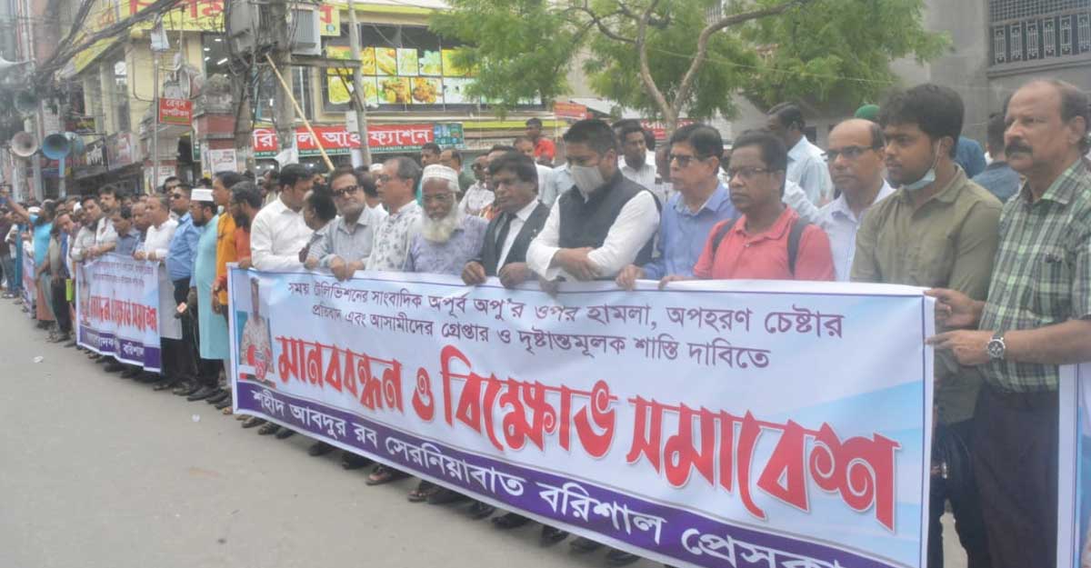 সাংবাদিক অপূর্ব অপুকে অপহরণচেষ্টার প্রতিবাদ ও আসামিদের গ্রেপ্তারের দাবিতে বুধবার (১ জুন) সকালে বরিশাল প্রেসক্লাবে আয়োজিত মানববন্ধনে মেয়র এসব কথা বলেন।