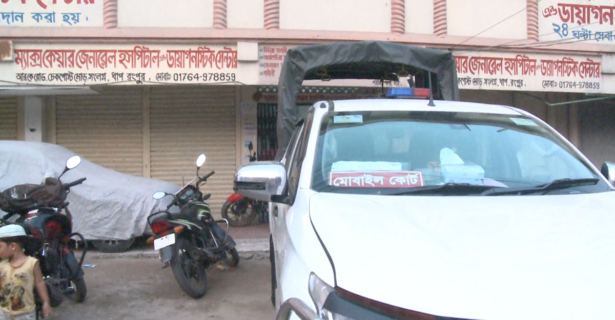 রংপুরে ভুয়া ডাক্তার ও ভুয়া নিবন্ধন ব্যবহার করে হাসপাতাল পরিচালনার অপরাধে নিউ ম্যাক্স কেয়ার জেনারেল হসপিটাল এন্ড ডায়াগনস্টিক সেন্টারকে এক লাখ পাঁচ হাজার টাকা জরিমানা করেছেন ভ্রাম্যমাণ আদালত। একই সঙ্গে তিন দিনের মধ্যে রোগীদের অন্যত্র সরিয়ে নিয়ে হাসপাতাল বন্ধের নির্দেশ দেওয়া হয়েছে।